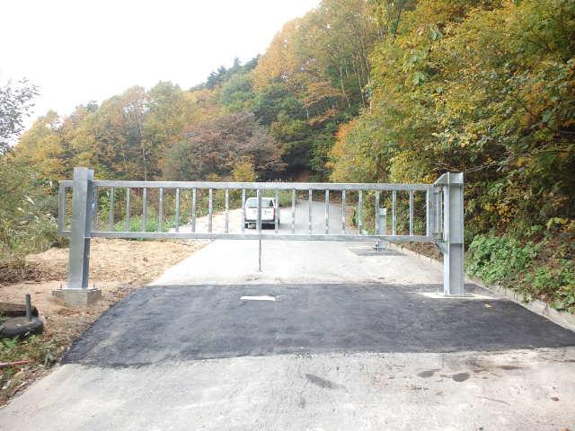 ▼天元台湯元に頑強なゲート完成(作業道路)