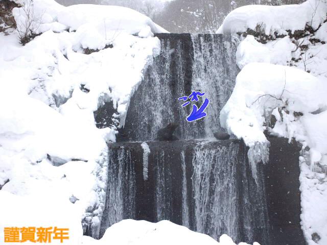 ▼謹賀新年 奥白布のビッキ石は負けないで固まってます^^;