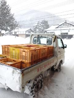 宿の薪ストーブは里の間伐材を麓で自然乾燥させておいて運びやすいように野菜コンテナにいれてます。それを定期的に運ぶのが通称:Kトラ(笑) いつも12〜14コンテナを運ぶのですが、今回は2段重ねで22コンテナ(^O^)/ ちょっと重かったかな?!何となく前輪浮き気味^^; それでも、8.5キロの道のりをなめらかに無事輸送完了で〜す。