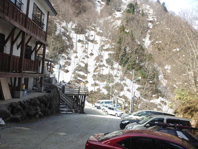 山肌には雪がありますが、道路と駐車場周囲はスッカリ消えております。 ノーマルタイヤ、2WD車でも大丈夫です。 連休中は混み合いますのでくれぐれもアクセスには気を付けてください。