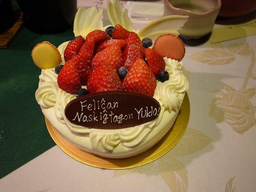 画像は、4月21日、私の誕生日の時に、たまたま当館にて青年会議所時代の仲間の会が開催されて、お祝いにケーキを頂きました。