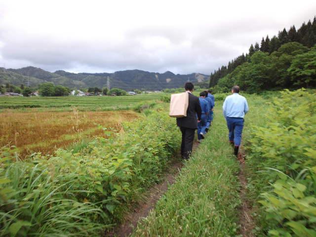▼あぜ道を歩く“足元観光”。それとも酔い覚まし・・・