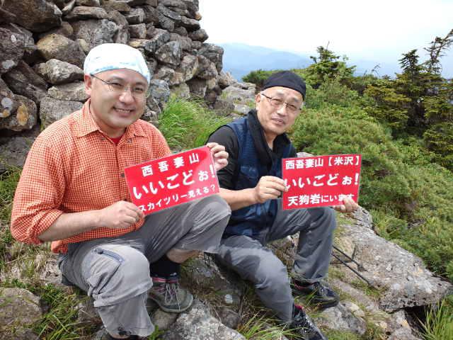 ▼日本秘湯を守る会長と“いいごどぉ!”(西吾妻・天狗岩にて)