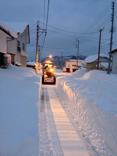 歩道を除雪ロータリーが1mほど“吹き溜まった”粉雪を