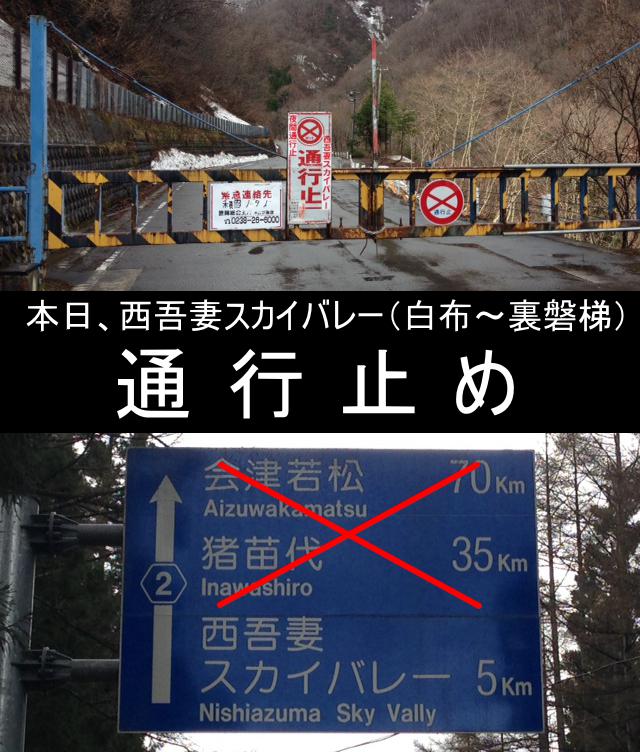 5月3日 西吾妻スカイバレー“終日通行止め” ※山頂付近凍結の為