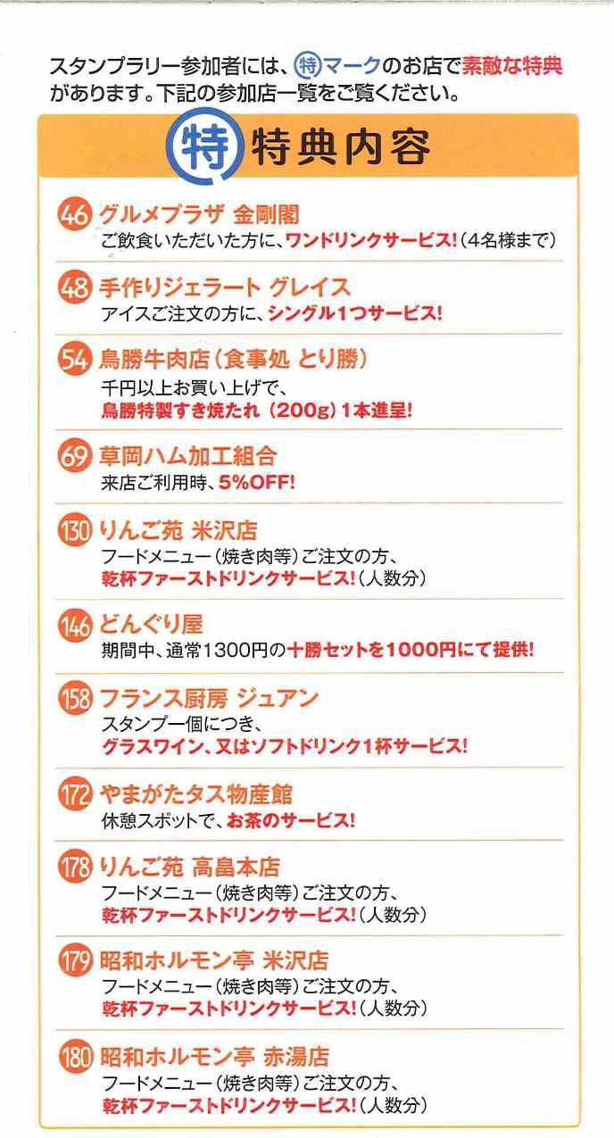 スタンプラリー参加者には特マークのお店で
