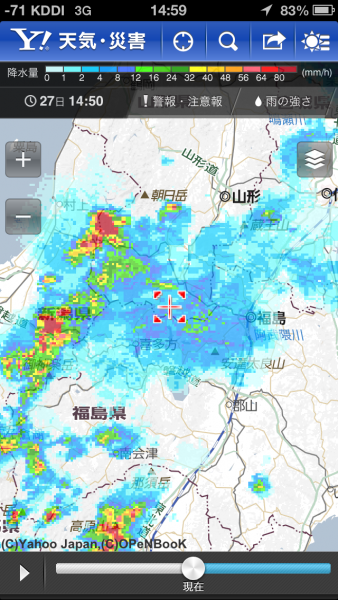 ▼案ずるより調べてみれば(*^^)v Yahoo!雨雲リアルタイムレーダー