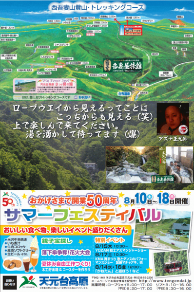 標高1126の隣には、標高1350の遊ぶところ暑くなったら天元台で涼みましょう。涼んだら温泉で温まりましょう。__________________おかげさまで開業50周年天元台高原サマーフェスティバル開催期間 8/10(土)〜18日(日)おいしい食べ物、楽しいイベント盛りだくさん!夏休みは天元台高原へ行こう詳しくは↓をクリックhttp://www.tengendai.jp/