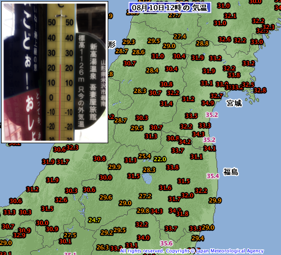 12:00現在 25℃ 米沢市内は・・・福島は・・・私の街は・・・「あなたのところとは違うんです」と言いそうになる、お部屋にエアコンないんですか?というお問合せ(・∀・) ここは異次元(*^^)v 下界の住民様が想像できるイメージの枠外なんです(笑)どちらが現実か?! ようこそ!現実の世界へ(^_-)-☆