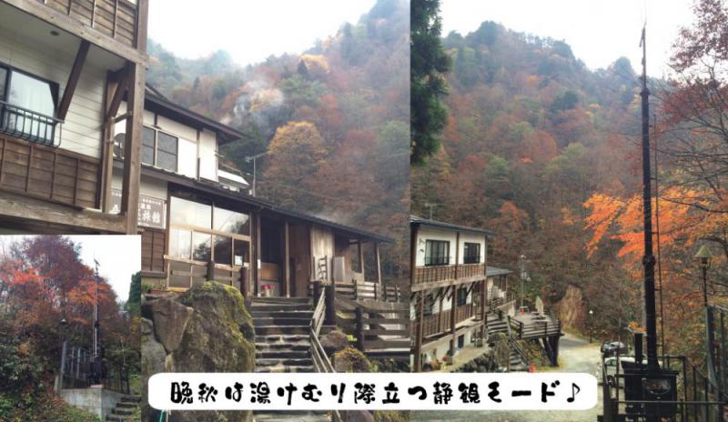 紅葉から落葉への移行期です。山奥の朝晩の冷え込みは意外に“やんわり”なんです。気温は低くなりますけど・・・(^_-)-☆湯けむりと合わせて、薪ストーブの煙もほんわかと。伝わりますかぁw