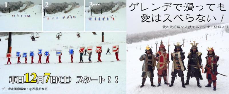 ▼天元台ゲレンデ開きに愛の武将隊見参!