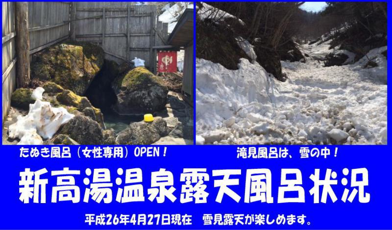 ▼新高湯温泉の“雪見”露天風呂情報 4月27日現在