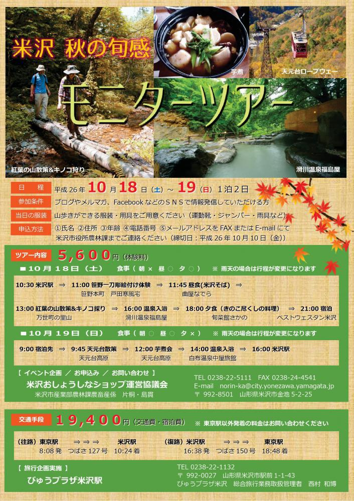 「米沢 秋の旬感 モニターツアー」を開催します。