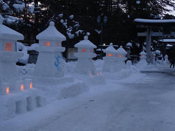 本番当日よりも1日前に、「上杉神社参道」周辺の雪灯篭に点灯します。