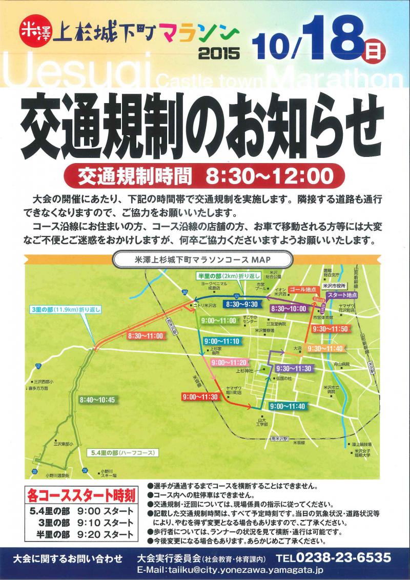 ▼上杉城下町マラソン2015に伴う交通規制のお知らせ