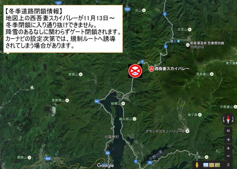 ▼【冬季通行止め区間のお知らせ】西吾妻スカイバレー 11/13〜 冬季通行止め