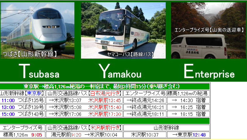 東京から公共交通で、どの位の持間?という問いに答える表を作りました。(^_-)-☆ http://www11.plala.or.jp/shintakayu/