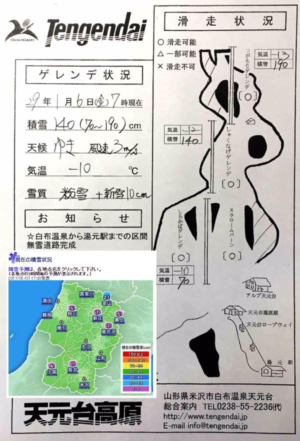 ▼米沢市内積雪ゼロ(公称値)でも山奥には140cm!(天元台高原)
