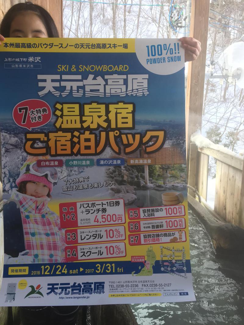 【天元台高原リフト割引券付】粉雪♪サラ雪☆雪マシマシ! 100%パウダースノー冬の天元台高原へ行こう! 宿泊者限定 7大特典で雪山も温泉も楽しもうご宿泊のお客様には天元台高原の雪山と温泉を楽しめる割引券付き!!【7大特典付き 割引券 4,500円(税込)】〜特典内容〜★ご利用期間 〜2017年3月30日(木)★1.天元台高原パスポート1日券2.ランチ無料 カレー・ピラフ・スパゲティ ※レストラン白樺での飲食、営業時間内 11:00〜14:003.スキーレンタル10%割引※吾妻スポーツレンタルセンター4.スキースクール10%割引※天元台スキースクール5.日帰り温泉入浴 100円割引 ※白布温泉・小野川温泉6.白布温泉 『そば処 吾妻軒』 100円引 営業時間:11:00〜17:00 定休日=不定休7.共通お土産割引 白布温泉街 かもしか酒店 1000円以上のお買い物で5%引き当日、チェックイン前にゲレンデに出かける際は、湯元駅改札に特典引換券を手配いたしますのでご連絡ください。