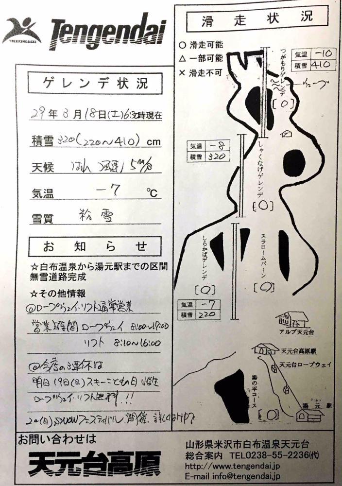 最新の天元台ゲレンデ情報です。世間の雰囲気にのまれ、春と勘違いされてませんか?(笑)3月は冬です(^_-)-☆スキー道具をしまうのは、まだ早いです。タイヤ交換するのも(^^)/