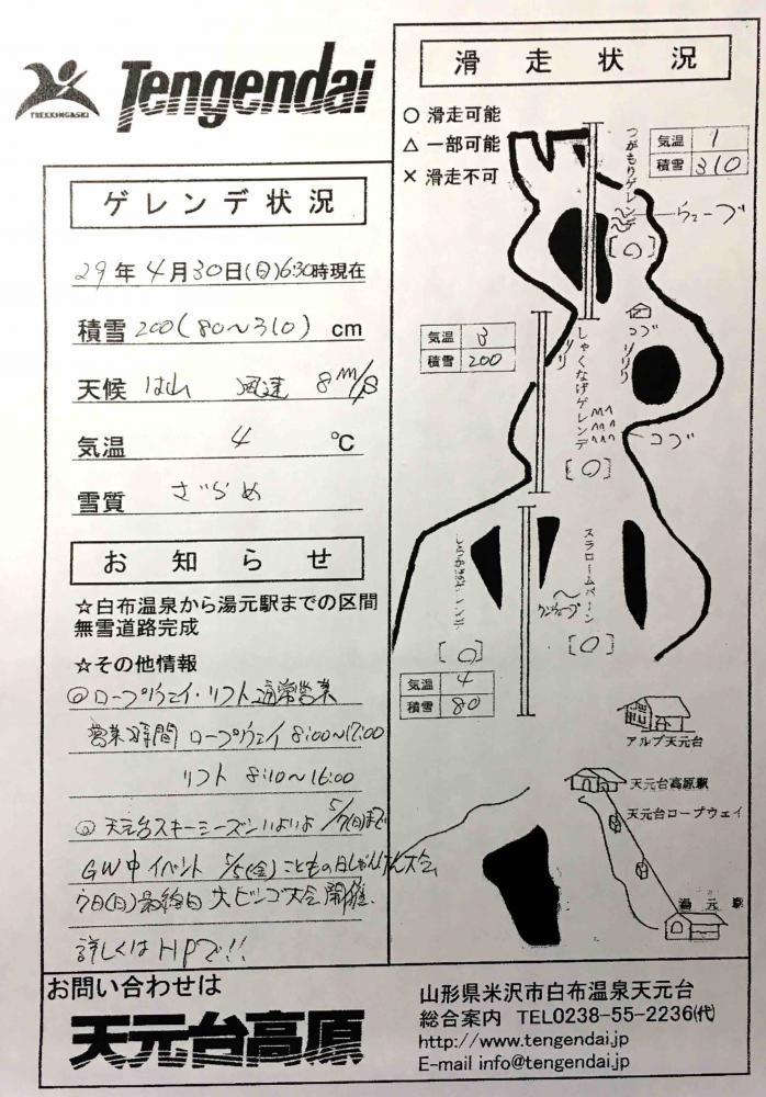 ▼■天元台高原ゲレンデ情報■2017/04/30