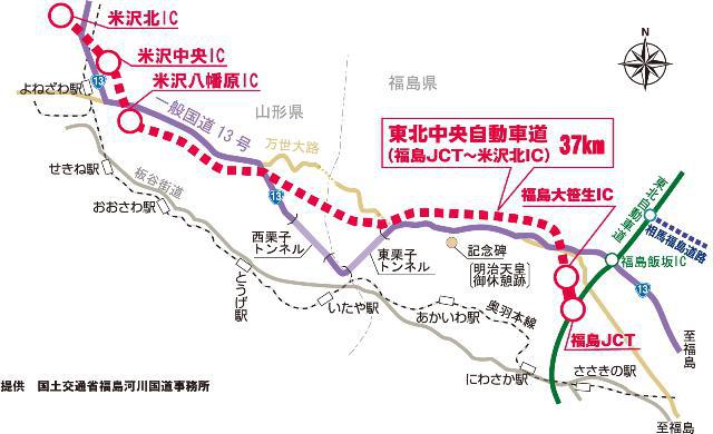 平成29年度中(平成30年3月末迄)に開通する福島〜米沢 (東北中央自動車道)既存40分(国道13号)が、20分(東北中央道)という事に加え諸事情による相互う回路など、交通の安定化が期待できます。しかも、その区間(東北中央道 福島〜米沢)が 【無料】 とくれば通らない理由を探すのが困難(笑)無料とくると、期間限定、特例措置 っぽいイメージがわきますが元々の計画時より、新直轄方式ナンタラカンタラ・・で、無料なのです。逆に、法律を変えないと 有料にはならない区間(^_-)-☆さて、11月開通説。 ギリギリ3月開通説。 さぁ楽しみ♪ マップ素材元http://www.city.yonezawa.yamagata.jp/5426.htm