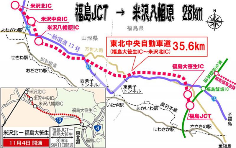 【福島JCT→米沢八幡原IC】この区間は〔28km〕です。そこを時速70kmで走行したとして〔24分〕米沢八幡原IC → 新高湯温泉 〔30分〕福島JCT〜新高湯温泉 = 【54分】 『山奥の秘湯へ簡単にアクセス出来たら興醒めしちゃう』そんなご心配は無用です!高速網が繋がり、時間が読めるようになりますが高速道路→国道→県道→市道→農道→険道→酷道→奥の山道変化に富んだ中身が濃いアクセスの魅力は守れます。