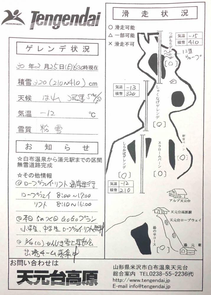 ▼天元台ゲレンデ状況 2018年2月25日現在