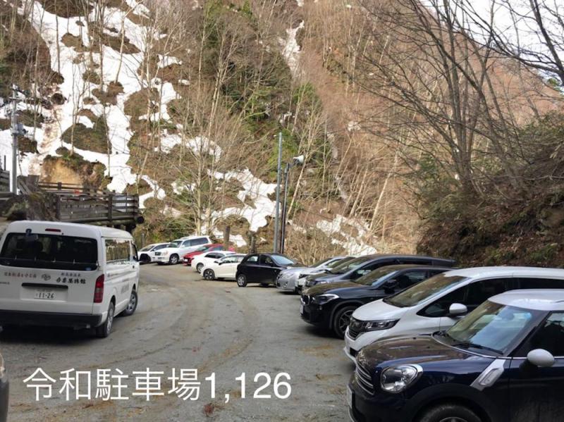 この画像は残雪期の5月初旬ですが、イメージとして御覧ください。宿前に駐車できる台数は12台ぐらい+周囲に10台ぐらい。計20台チョイ安心してください。 宿泊のお客様+α ってことで充分です。(^_-)-☆※お一人1台だと満車に!?(笑)因みに、この辺りで有料駐車場という概念はありません。オートバイがない?! 坂道が苦手なんでしょうかねぇ・・・ ガッツみせて欲しいです。\(^o^)/