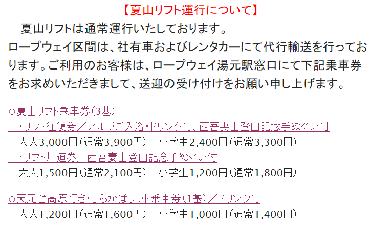 ▼【天元台運行情報】リフト運行はご覧の通りです!令和元年7月14日現在