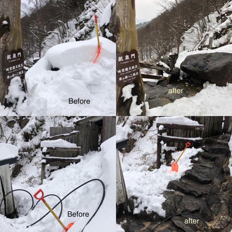 ▼雪見露天風呂回廊整備も温泉力&人力(笑)