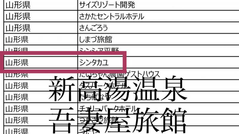 7月22日〜8月31日 GoToトラベル【事後還付申請】対象のお客様さぞや、あの全国版リストから確認することは難儀のことと思います。しかも、当宿が「山形県 シンタカユ」で登録されていることを確認しました。シンタカユ = 新高湯温泉 吾妻屋旅館 です。GoTo事務局へ問い合わせるにも、極めて難しい状況です。ともあれ「事後還付対象宿泊施設」には間違いないことをお知らせする次第です。フォースとGoToが共に在らんことを標高1126mより