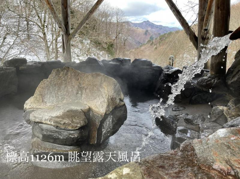 いい感じ(^_-)-☆ 打たせ湯(種子島)にして初めての雪見シーズンを迎えた眺望露天風呂 標高1126mです。 湯しぶきの波紋が、温かく優しい泉質を更に柔らかく。 日本秘湯守る会 新高湯温泉 吾妻屋旅館