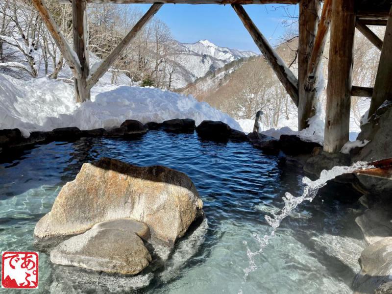 たっぷりの雪 清涼な空気 そして源泉100%が奏でるハーモニーをお楽しみください♪雪見の景色は4月中旬まで満喫できます。