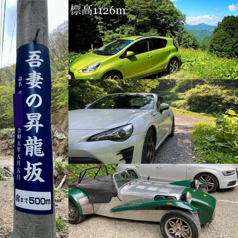 天元台湯元〜新高湯温泉 までの奥の山道(1km) 宿まで、あと 500m〜 を【吾妻の昇龍坂】と命名頂きました。数十年前までは更に道が細い急坂で4WD必須と言われた過去もありました。昨今、道は徐々に改良され、同時に車の運動性能も進歩しました。 特にハイブリッド車(アクア、プリウス等)の登坂能力は素晴らしいです。道も改良され、車も進歩した・・・ 残るは運転者の気持ち(笑) 「昇龍の如く アゲアゲで!」そんな想いも【吾妻の昇龍坂】には含まれています。