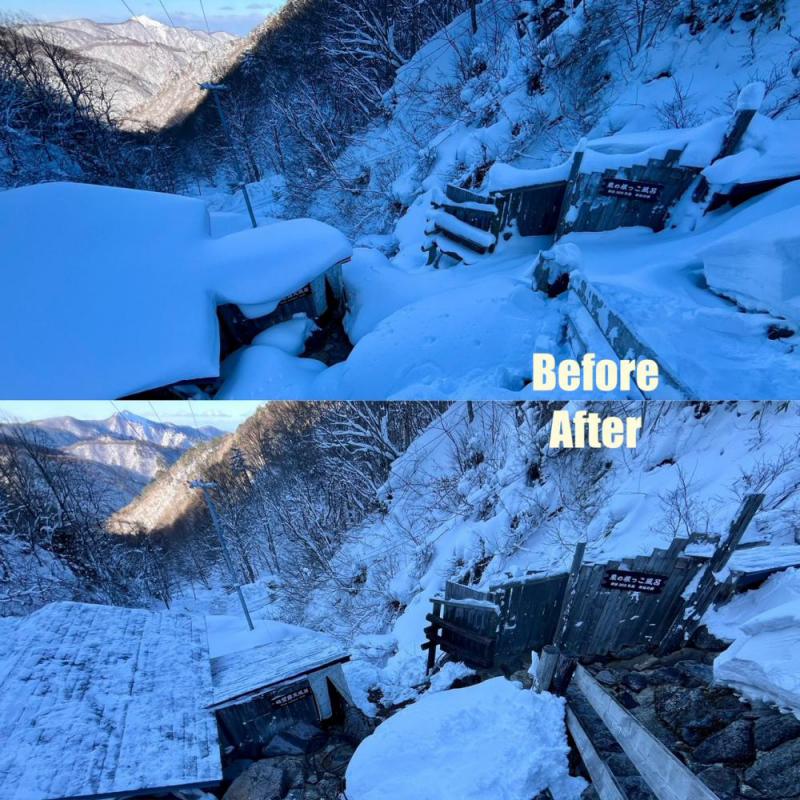 ▼雪が積もればビフォー・アフター 源泉雪溶かし