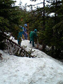 例年より残雪は少ないようでした。 それでも一部は このように登山道も隠れている場所もありました。