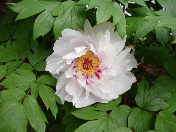 当館玄関前に牡丹が咲きました。白い大きな花!とてもきれいです。花が咲き乱れ鳥が朝早く鳴く。