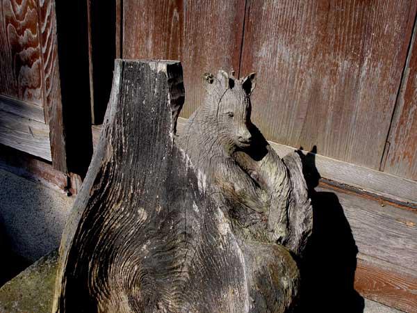 これを製作したふもとの集落のおじいちゃん、亡くなって何年になるのだろうか。自宅の小屋をアトリエにして沢山の木彫りの動物を作られました。熊、かもしか、猿、やさしいまなざしで作られた動物達。