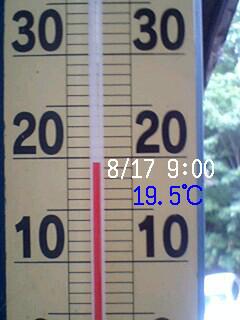 ▼必撮♪山奥 朝の外気温 8/17 9:00 【19.5℃】
