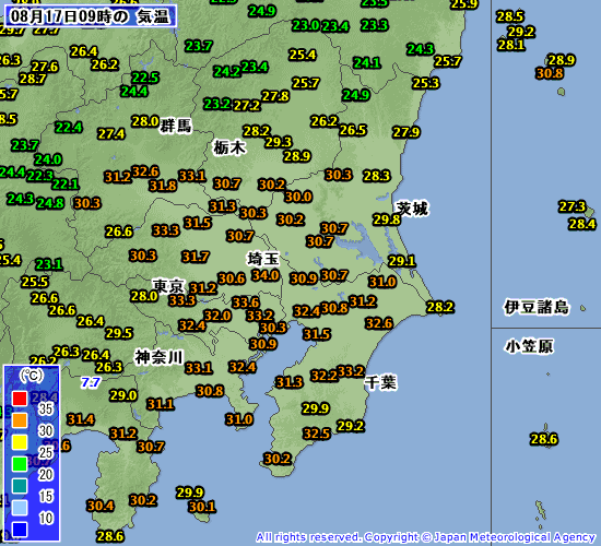 気象庁アメダス(気温:関東地方)