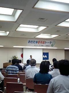 「おきたま夢未来トーク」知事と語りませんか置賜の未来。 ということで、必撮の間合いを求め参加して参りました。 知事の挨拶、今後の県政運営について、そして知事との語らい(質疑、意見交換) 夜7時〜始まり、予定の終了時間9時までの2時間、とても内容のある“語らい”でございました。 意見のある人がひっきりなしに続き、進行役が終了の笛を持ったロスタイム。 ついに、(携帯)広域番頭として、セガールが挙手(^_^)/ まさにロスタイム最後のセットプレーと言った所かな。 ペナルティーエリアの少し外、得意?の斜め45度から、「秘湯と中山間部におけるブロードバンドエリアの拡大と数値目標」ということで、山形の未来、生活インフラとしての通信、などを絡めつつ意見を述べさせて頂きました。 答えは・・・ 平成21年度 山形県全域ブロードバンド(BB)100%という明確な数値目標です。 そして、現在庄内地域において、BBを無線においてエリア拡充するという技術的な試験を既に実施しており、技術的問題をクリアすることにより100%という目標は実現可能になる! 特に、知事曰く「通信インフラ(BB)は、電気、ガス、水道と同じように、基本的生活インフラに既になっている」という言葉に、山奥の大番頭→携帯番頭→広域番頭(ブロードばんとう)は“吾が意を得たり”(^^♪ この“語らい”の意義があったかないかは、傍観者でなく、語ったものとしての意義に問われる。 さぁ 皆さん挙手しましょう。 但し、発言は3分以内ですよ(^_-)-☆
