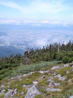展望台より 米沢盆地を 眺めています。最高の天気に恵まれています。平日なので 登山の方も 少ないようでした。