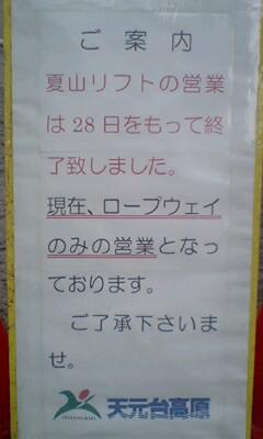 10月29日〜 天元台高原の登山用リフトが冬季シーズンに備え整備運休に入っております。 登山の皆さんはご注意下さい。 因みに、標高920mと標高1350mを結ぶ、ロープウエイは11月4日まで運行します。(11月5日より整備運休) 11月17日のスキー場開きに向け、いよいよ準備開始です。 ※降雪具合により滑走できない場合此れ有り(^_-)-☆