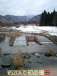 サミダレを集める前の最上川(^^♪ 雪も降らないし何もすることないから♪必撮用ケータイ au をW43CA→W52CAに機種交換しました。ポイントが貯まるのを待ち、お値段がこなれて来る時期を待ち(約半年)、店頭在庫切れ(~o~) そんな窮地?を救ってくれたauショップ徳町大通り店にシャイ(謝意) ドコモやSBの皆さんにとっては馴染み薄いカシオ端末の優位性を実感すると共に着実にバージョンアップしている職人技(機種&セガール?!) 雪どけ水ながれる最上川源流にて西吾妻山を撮るのでありました。