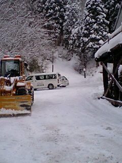 週末の今日は 宿の前の 駐車場も本日宿泊のお客様の為に 広く排雪してお待ちして おります。但し 4WD車のみ限定です。(宿手前1`)