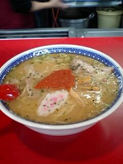 赤湯ラーメン 「龍上海」にて 辛味噌ラーメンです。久々に おいしく頂きました。でもいつきても 店内は たくさんの お客様でした。