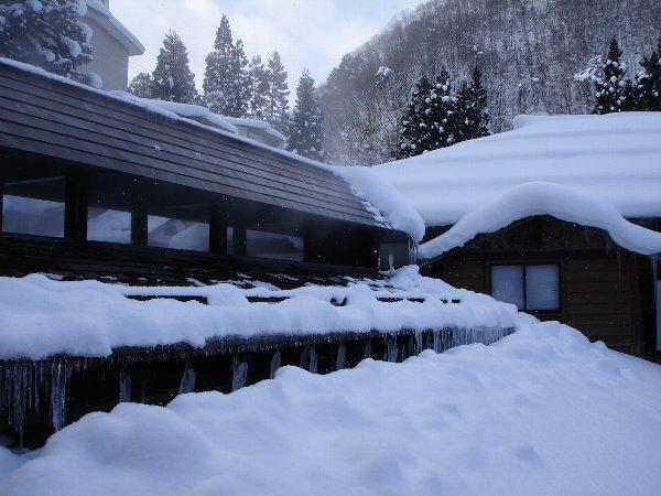夏は雨が降れば雨が入ってきます。雪が降れば雪が入ってきます。まあ半「露天」とでも言うのでしょうか。よく「露天風呂は無いの?」とお問い合わせを頂きます。私の思う露天風呂はそばに渓流が流れていて山が迫っていて・・・という感じ。露天風呂は今の所ありませんが、かなり露天チックです。内風呂というにはちょっと開放的過ぎ、かといって露天を称するには囲まれ過ぎ・・・