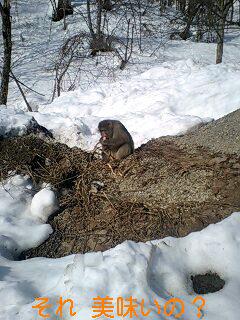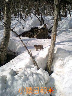 ここ最近、ご対面してもお互いに“久しぶりっ”って感じ全然しませんね。今日はここでか・・・! あっちも、またお前か・・・! こっちが車に乗ったままで3m。 これが猿とのセーフティーな間合いです。