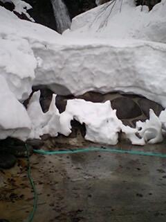 消雪作業をやった結果ようやく 滝見露天風呂の 一部がでてきました。それにしても すごい雪の量げす。何とか5月の連休に間に合うようにと思っています。